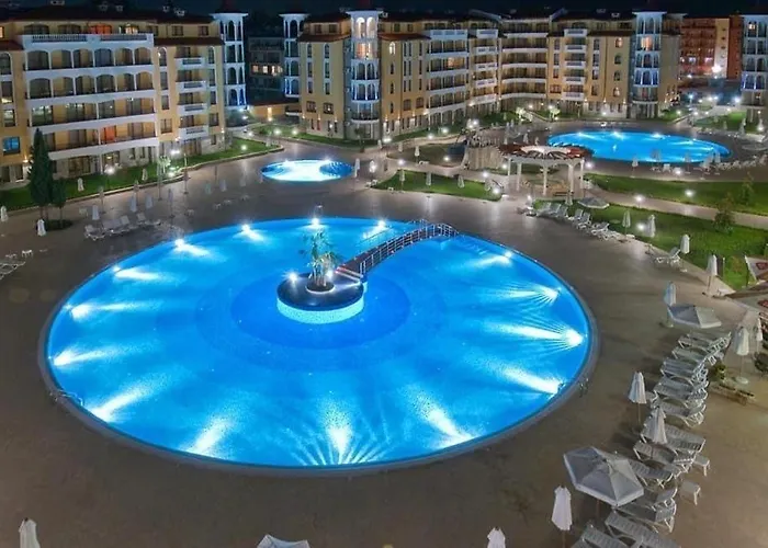 Apartament Royal Sun Complex Słoneczny Brzeg o powierzchni 65 m^2 oferuje widoki na basen, a także taras z basenem. Cerkiew Świętych Archaniołów Michała i Gabriela w Nesebyrze i Plaża Cacao znajdują się odpowiednio w odległości około 10 min autem i około 20 min spacerem od apartamentu.